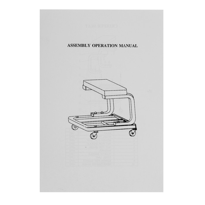 Сиденье - 1 штСтальной каркас - 1 штВинт - 1 штГайка для сиденья - 1 штГайка для колес - 1 штШайба - 1 штПластмассовый поддон - 1 штРама - 1 штВинт - 1 штКолеса - 1 штПластины - 1 шт