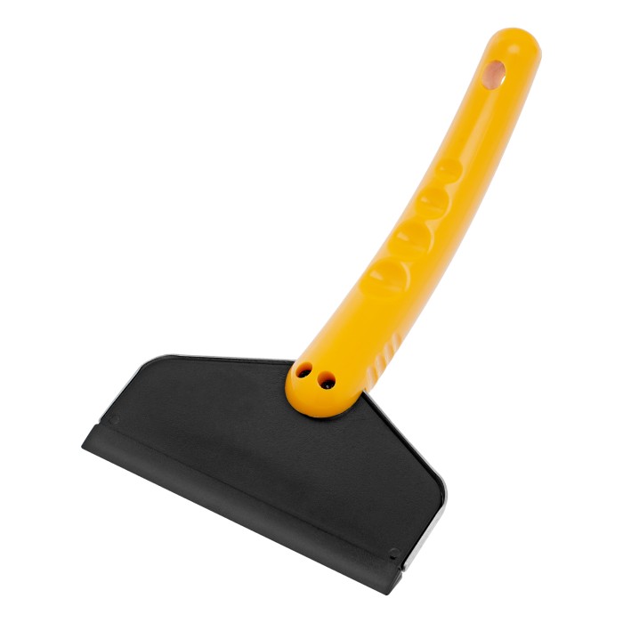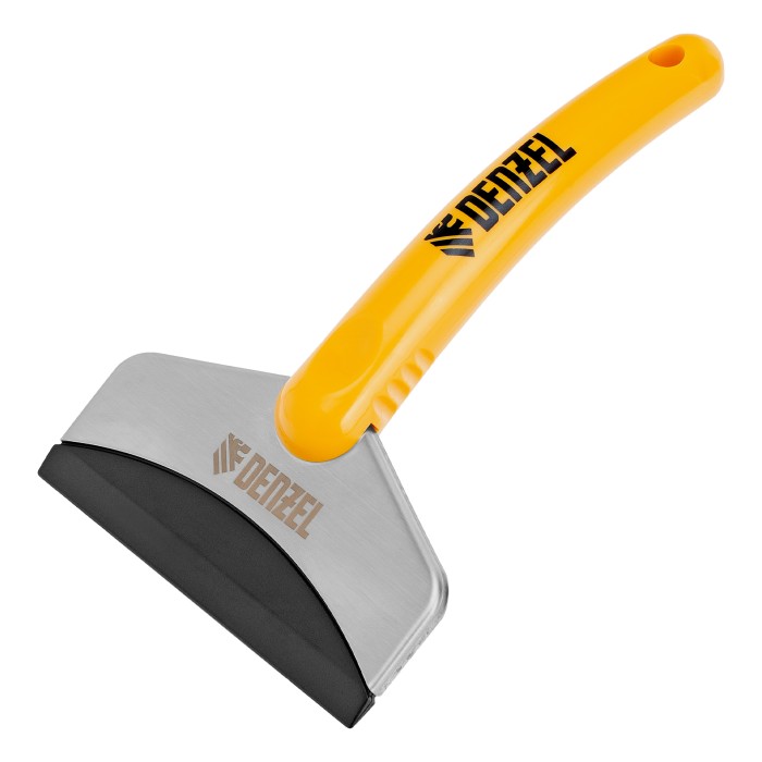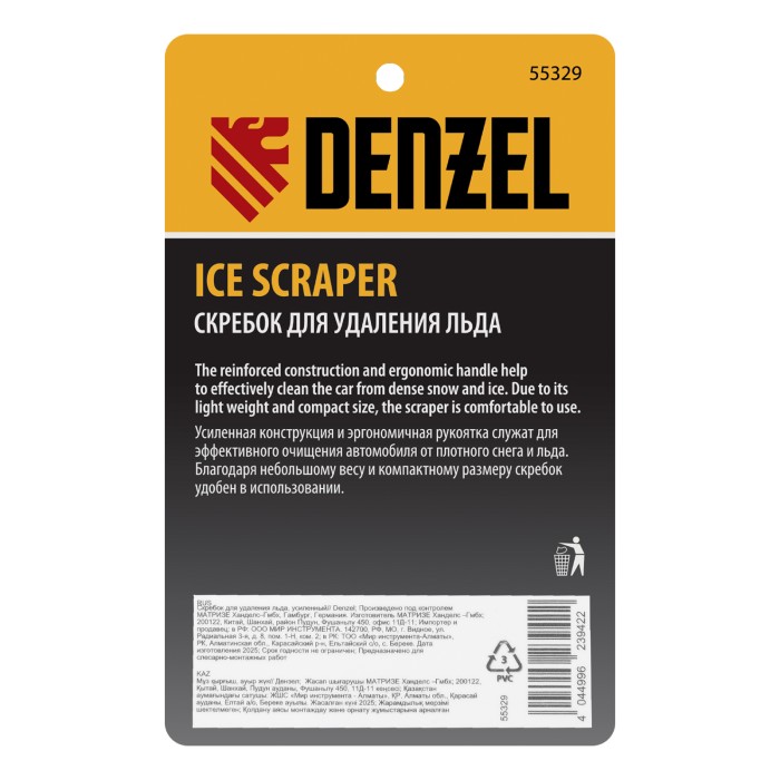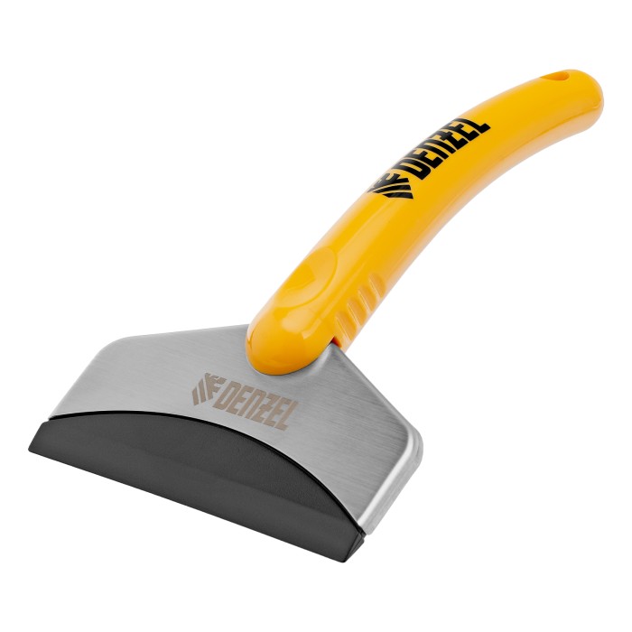 Усиленный скребок для удаления льда Denzel 55329 применяется для очищения зеркал и стекол автомобиля от налипшего и примерзшего снега. За счет небольшого размера 18 х 11 см скребок удобно хранить в салоне автомобиля. Преимущества Надежность и высокий ресурс — скребок изготовлен из ABS-пластика и нержавеющей стали, выдерживает температуру до -40 °C.Высокая эффективность — благодаря эргономичной форме скребок быстро удаляет наледь. Аккуратная работа — конструкцией предусмотрены подпальцевые упоры, препятствующие выскальзыванию инструмента из рук. Малый вес 96 г — можно работать без усталости на протяжении длительного времени.