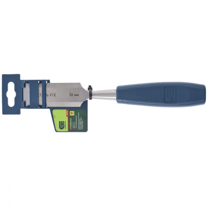 Стамеска Сибртех 24730 с пластиковой рукояткой и режущей частью шириной 30 мм подходит для обработки древесины любых пород. Предназначена для выборки небольших углублений, получения точных вырезов, снятия фасок и выполнения других столярно-плотницких работ. Инструмент будет полезен дома и в столярной мастерской.ПреимуществаПрочность и долговечность — рабочее полотно изготовлено из высококачественной конструкционной углеродистой стали 55.Эффективность и высокий ресурс — полотно закалено до твердости 56-57 HRC на 0,7 длины рабочей части, поэтому режущая кромка долго сохраняет остроту.Надежность и комфорт — ручка из ударопрочного пластика не выскальзывает из ладони и выдерживает длительное использование.