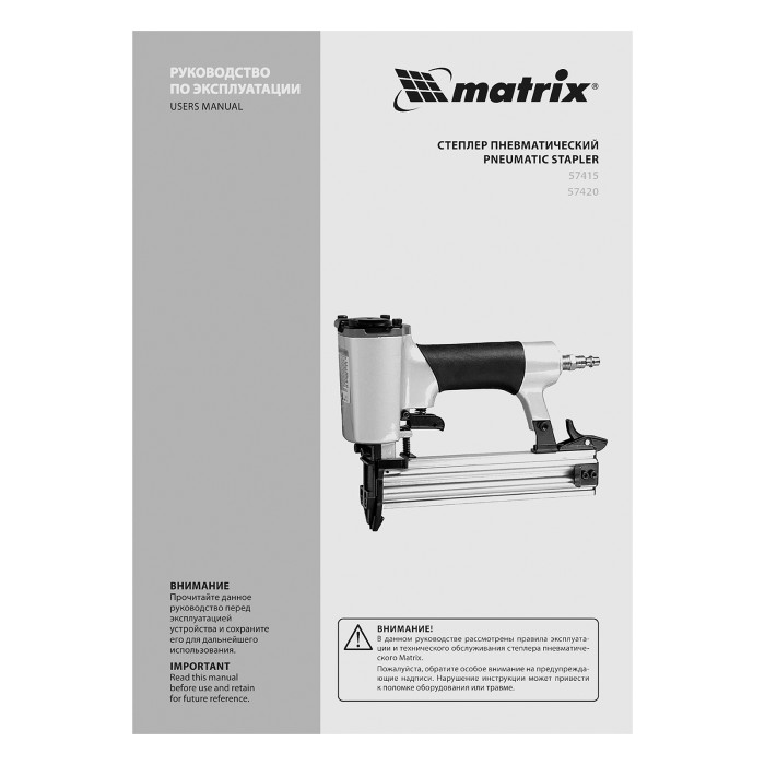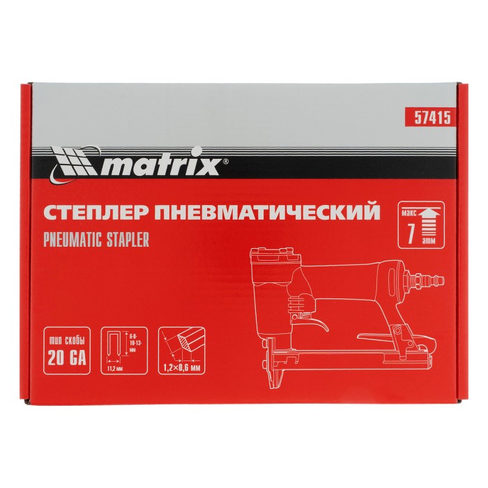 Пневматический степлер Matrix 57415 для прямоугольных скоб 20GA длиной от 6 до 13 мм применяется при проведении ремонтных и отделочных работ. С его помощью можно обить мебель, зафиксировать утеплитель, обшивку, листы фанеры и ДВП, закрепить провода и кабели, выполнить драпировку тканью. Инструмент оптимален для бытового применения.ПреимуществаВместительный магазин — одной обоймы на 100 скоб хватит для выполнения большого объема работ.Продуманная конструкция — благодаря быстрому доступу к магазину зарядить степлер можно за несколько секунд.Прочность и долговечность — корпус изготовлен из алюминия, поэтому инструмент прослужит долго.Удобная работа — степлер весит всего 0,9 кг, а обрезиненная рукоятка обеспечивает удобный хват.Подтвержденное качество — гарантия на заводской брак действует 3 года.