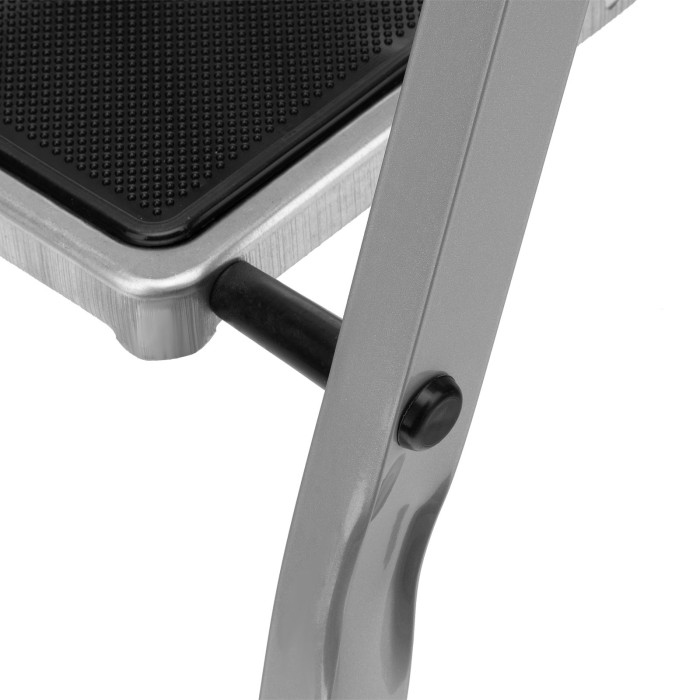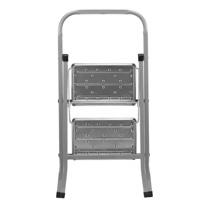 Стремянка стальная Сибртех 97867 имеет 2 ступени с полимерными ковриками и упрощает доступ к предметам и поверхностям, расположенным выше человеческого роста. Лестница легко раскладывается и складывается, а широкое основание придает ей устойчивость. Площадка находится на высоте 45 см от опорной поверхности, рабочая высота стремянки составляет 245 см (при среднем росте пользователя 170 см). Пригодится во время строительства и ремонта, а также будет полезна в быту.Стремянку необходимо устанавливать на ровную плоскость, работа с электроинструментом на ней не допускается.ПреимуществаПрочность — рама и ступени изготовлены из стали, поэтому стремянка выдерживает нагрузку 120 кг.Надежная фиксация в рабочем положении — верхняя площадка имеет специальные зацепы.Безопасность пользователя — на ступенях имеются нескользящие полимерные коврики.Забота о напольном покрытии — ножки с пластиковыми наконечниками не скользят и не оставляют царапин.Удобное хранение — благодаря планке, соединяющей ступени, и шарнирному механизму складывания стремянка в сложенном состоянии очень компактна, ее размеры составляют 880 х 455 х 60 мм.