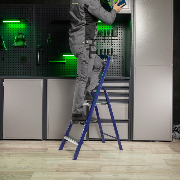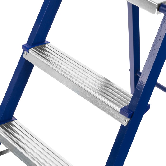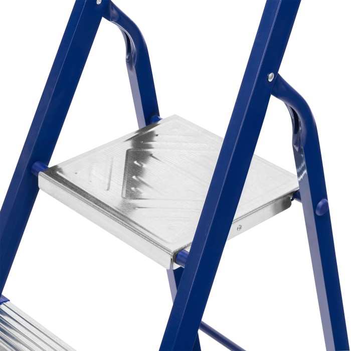 Стремянка стальная Сибртех 97843 с 3 ступенями облегчает выполнение ремонтных, отделочных, а также различных бытовых работ на высоте, превышающей человеческий рост. Площадка находится на высоте 58,5 см от опорной поверхности, рабочая высота стремянки составляет 258,5 см (при среднем росте пользователя 170 см). Высокая дуга безопасности обеспечивает удобную эксплуатацию. Стремянка пригодится дома и на даче.Для обеспечения устойчивости лестницу устанавливают на ровную поверхность, использование электроинструмента во время работы не допускается.ПреимуществаПовышенная прочность — рама и ступеньки изготовлены из стали и выдерживают нагрузку до 150 кг. Надежная фиксация в разложенном положении — рабочая площадка имеет специальные зацепы.Защита от коррозии — стальной профиль рамы покрыт порошковой эмалью.Безопасность пользователя — широкие профилированные ступени имеют рифленую поверхность, их углы защищены специальными накладками для защиты от порезов и царапин.Защита напольного покрытия — ножки с пластиковыми наконечниками не скользят и не оставляют царапины на опорной поверхности.Удобное хранение — размеры стремянки в сложенном состоянии составляют 1310 х 400 х 105 мм.Внешний вид товара может незначительно отличаться от указанного на изображении, что не влечет изменения его качества.