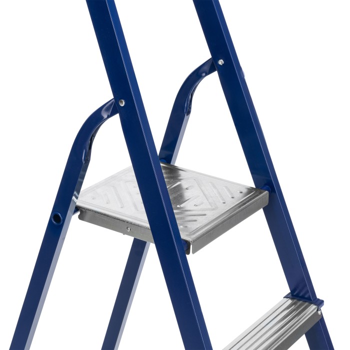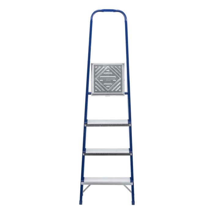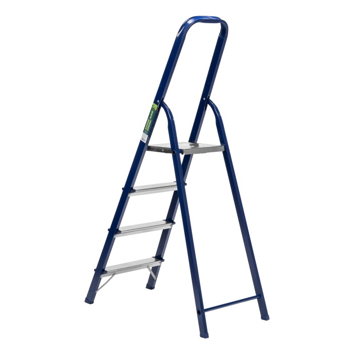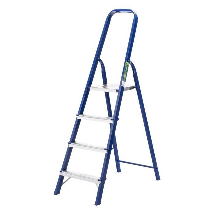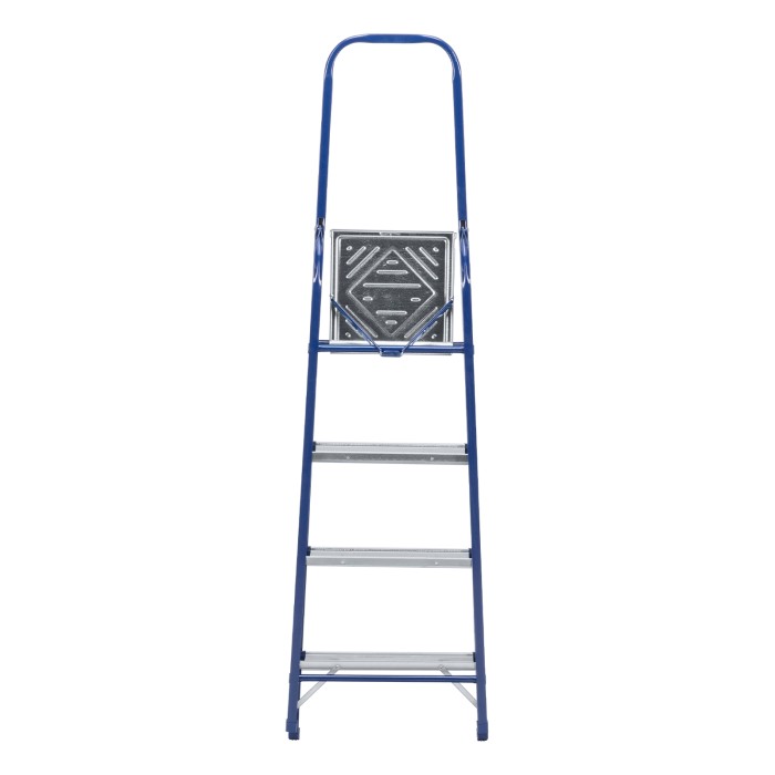 Стремянка стальная Сибртех 97844 с 4 ступенями облегчает выполнение ремонтных, отделочных, а также различных бытовых работ на высоте, превышающей человеческий рост. Площадка находится на высоте 80 см от опорной поверхности, рабочая высота стремянки составляет 280 см (при среднем росте пользователя 170 см). Высокая дуга безопасности обеспечивает удобную эксплуатацию. Стремянка пригодится дома и на даче.Для обеспечения устойчивости лестницу устанавливают на ровную поверхность, использование электроинструмента во время работы не допускается.ПреимуществаПовышенная прочность — рама и ступеньки изготовлены из стали и выдерживают нагрузку до 150 кг. Надежная фиксация в разложенном положении — рабочая площадка имеет специальные зацепы.Защита от коррозии — стальной профиль рамы покрыт порошковой эмалью.Безопасность пользователя — широкие профилированные ступени имеют рифленую поверхность, их углы защищены специальными накладками для защиты от порезов и царапин.Защита напольного покрытия — ножки с пластиковыми наконечниками не скользят и не оставляют царапины на опорной поверхности.Удобное хранение — размеры стремянки в сложенном состоянии составляют 1540 х 430 х 105 мм.Внешний вид товара может незначительно отличаться от указанного на изображении, что не влечет изменения его качества.