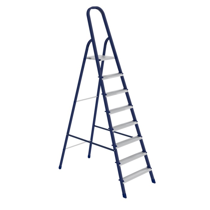 Стремянка стальная Сибртех 97849 с 9 ступенями облегчает выполнение ремонтных, отделочных, а также различных бытовых работ на высоте, превышающей человеческий рост. Площадка находится на высоте 186 см от опорной поверхности, рабочая высота стремянки составляет 386 см (при среднем росте пользователя 170 см). Высокая дуга безопасности обеспечивает удобную эксплуатацию. Стремянка пригодится дома и на даче.Для обеспечения устойчивости лестницу устанавливают на ровную поверхность, использование электроинструмента во время работы не допускается.ПреимуществаПовышенная прочность — рама и ступеньки изготовлены из стали и выдерживают нагрузку до 150 кг. Надежная фиксация в разложенном положении — рабочая площадка имеет специальные зацепы, также производитель предусмотрел прочные страховочные стяжки.Защита от коррозии — стальной профиль рамы покрыт порошковой эмалью.Безопасность пользователя — широкие профилированные ступени имеют рифленую поверхность, их углы защищены специальными накладками для защиты от порезов и царапин.Защита напольного покрытия — ножки с пластиковыми наконечниками не скользят и не оставляют царапины на опорной поверхности.Удобное хранение — размеры стремянки в сложенном состоянии составляют 2685 х 550 х 106 мм.