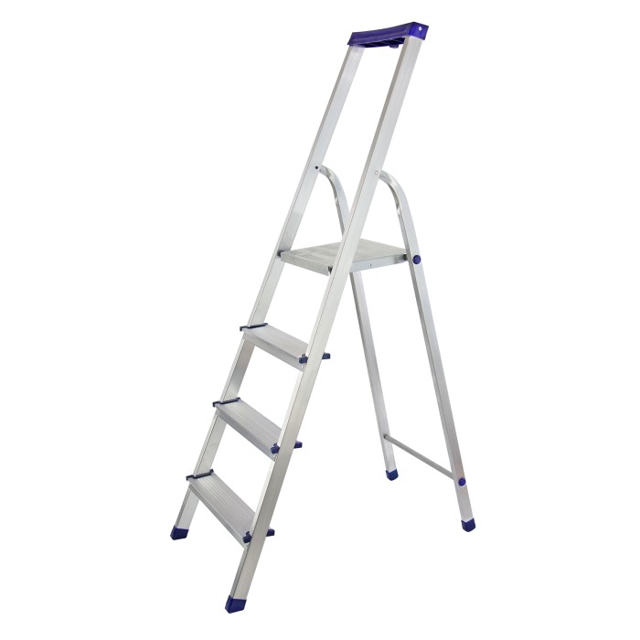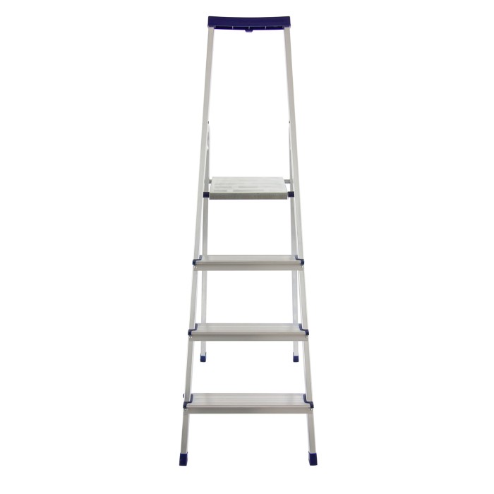 Стремянка алюминиевая Сибртех «Универсал» 97894 с 4 ступенями — складная лестница для отделочных и монтажных работ на высоте, превышающей человеческий рост. Площадка находится на высоте 81,5 см от опорной поверхности, ра...