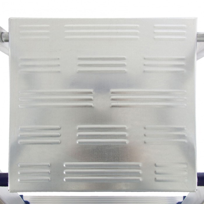 Стремянка алюминиевая Сибртех «Универсал» 97895 с 5 ступенями — складная лестница для отделочных и монтажных работ на высоте, превышающей человеческий рост. Площадка находится на высоте 103 см от опорной поверхности, раб...