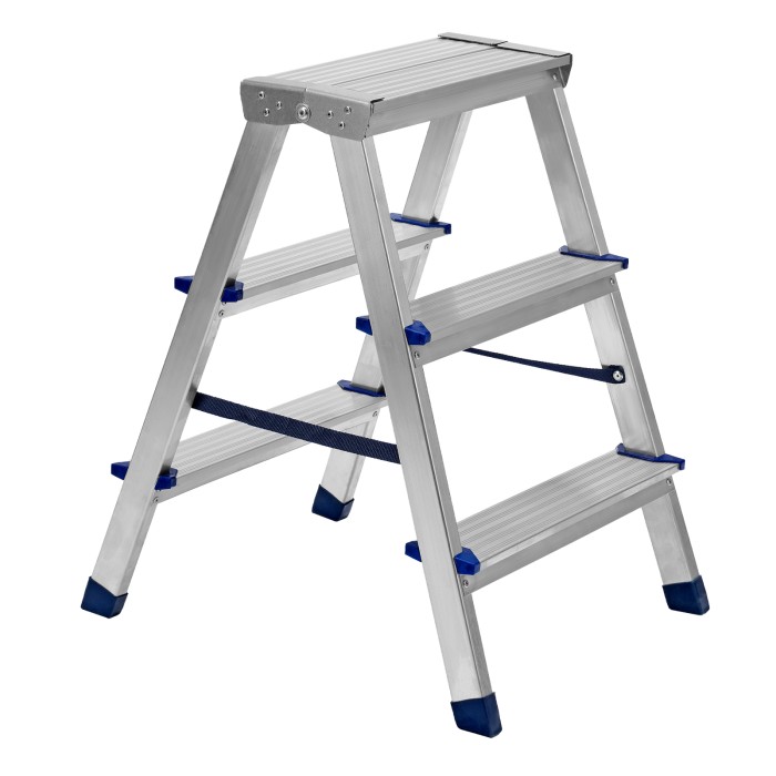 Стремянка двусторонняя 3 ступени, алюминиевая, Сибртех