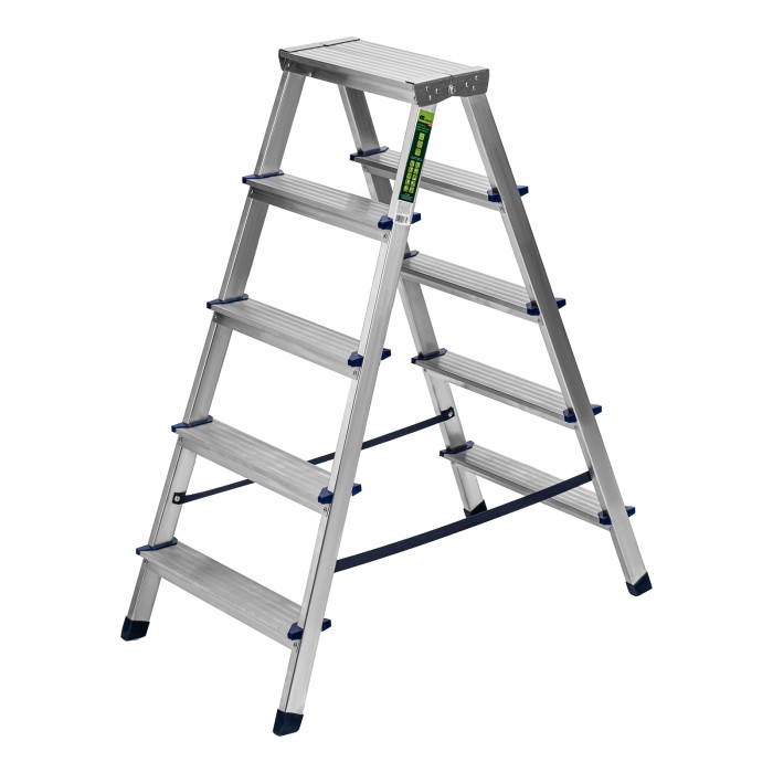 Стремянка двусторонняя 5 ступеней, алюминиевая, Сибртех