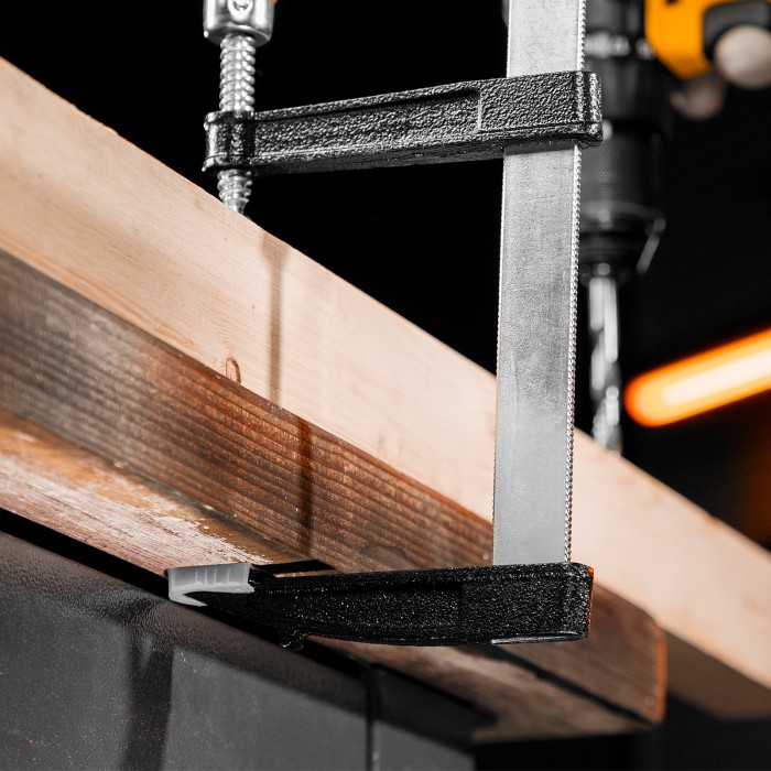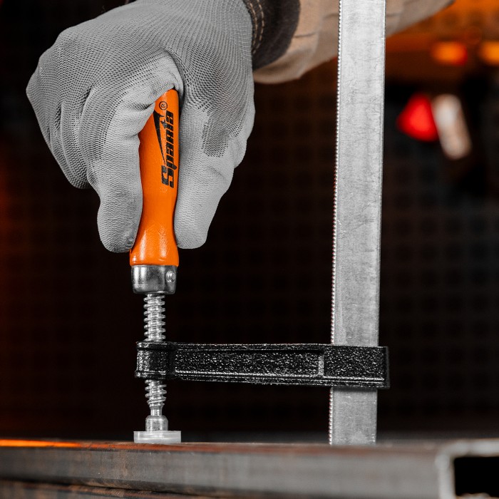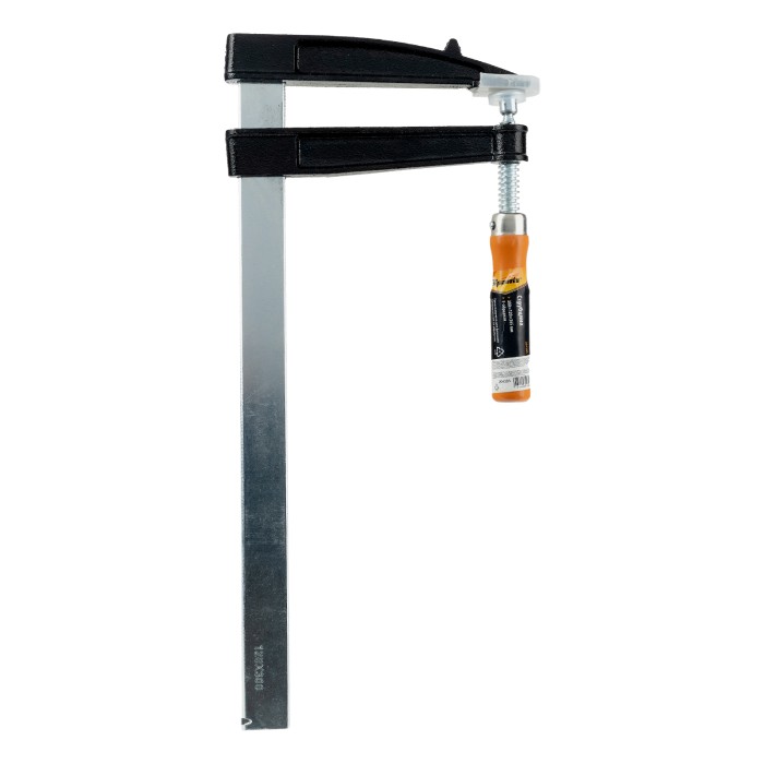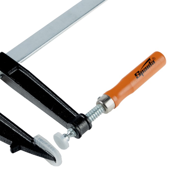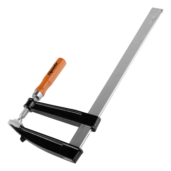 F-образная струбцина Sparta 204385 длиной 365 мм и величиной зажима 300 х 120 мм позволяет фиксировать заготовки из металла, древесины и других материалов для их соединения или обработки. Используется в столярном и слесарном деле. Деталь помещают между губками, одна из которых подвижна и служит для регулировки величины захвата. Винтовой зажим позволяет фиксировать заготовку со значительным усилием. Элементы конструкции выдерживают высокую температуру, поэтому струбцина подходит для проведения сварочных работ, при этом пластиковые накладки необходимо снять.ПреимуществаПрочность — стальная штанга выдерживает значительные изгибающие нагрузки.Длительный срок службы — оцинкованный винт устойчив к коррозии.Аккуратная работа — защитные накладки на губках предотвращают повреждение детали.Комфортная эксплуатация — удобная деревянная рукоятка надежно ложится в руку.
