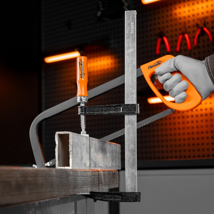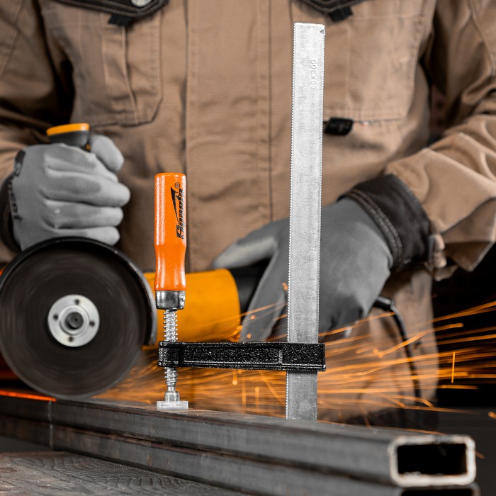 F-образная струбцина Sparta 204385 длиной 365 мм и величиной зажима 300 х 120 мм позволяет фиксировать заготовки из металла, древесины и других материалов для их соединения или обработки. Используется в столярном и слеса...