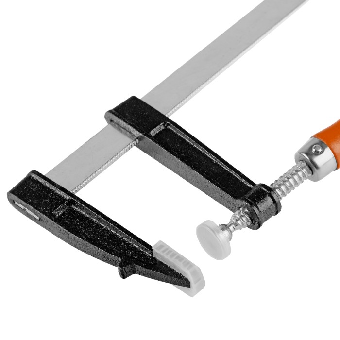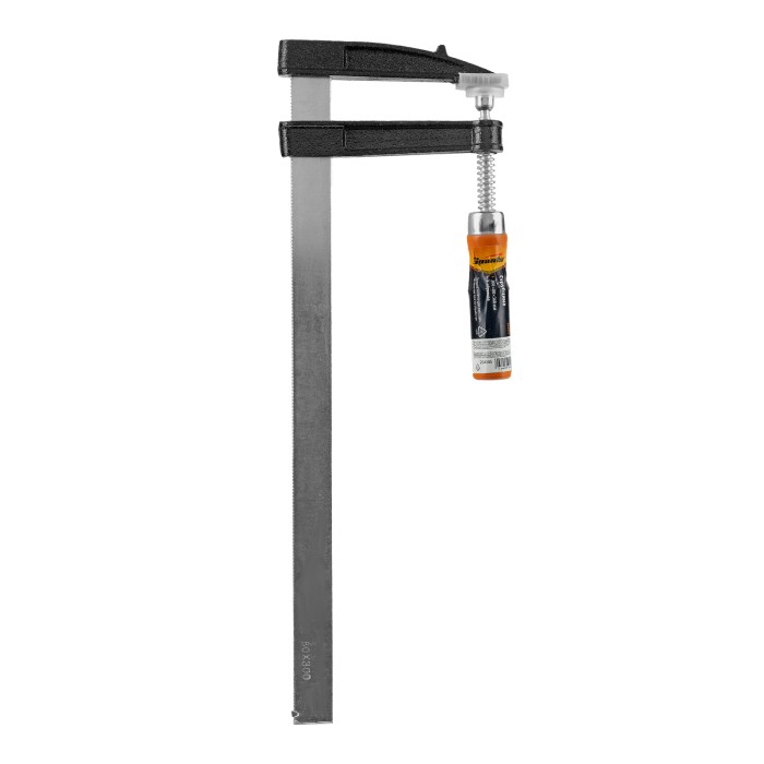 F-образная струбцина Sparta 204355 длиной 360 мм и величиной зажима 300 х 80 мм позволяет фиксировать заготовки из металла, древесины и других материалов для их соединения или обработки. Используется в столярном и слесар...