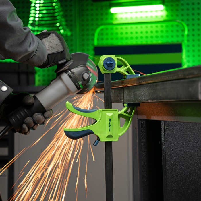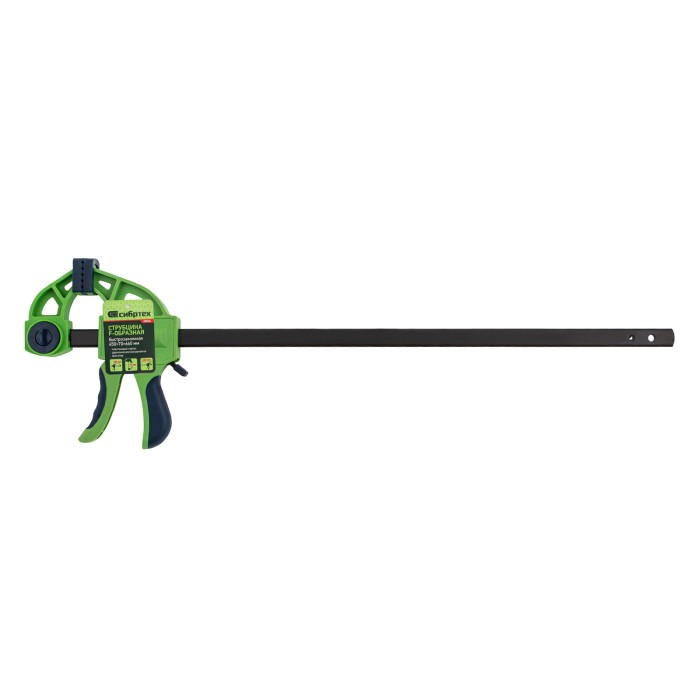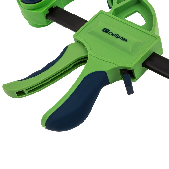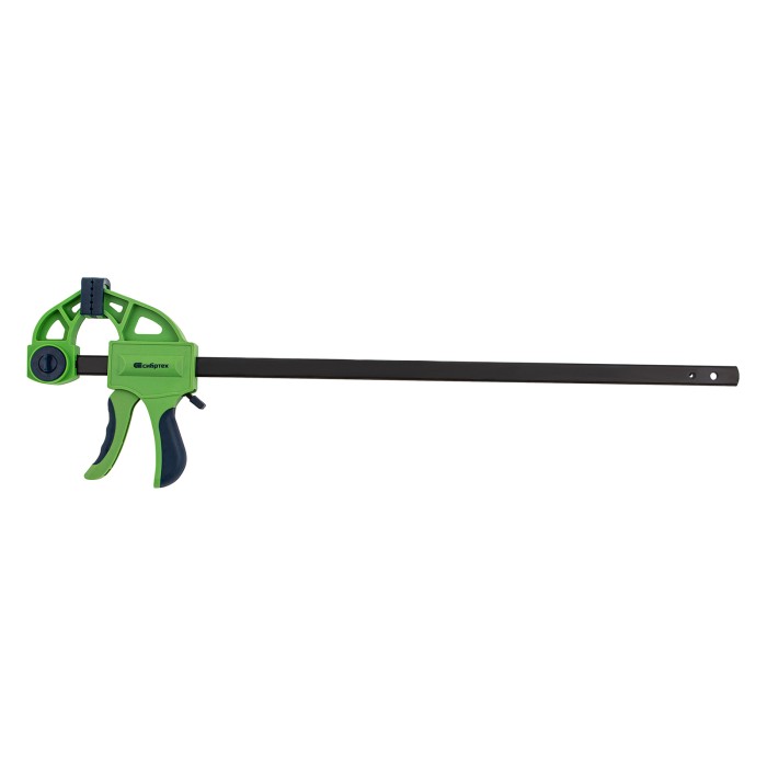 F-образная быстрозажимная струбцина Сибртех 20566 длиной 660 мм, с шириной и глубиной зажима 450 и 70 мм соответственно, в пластиковом корпусе, с фиксатором и двухкомпонентной рукояткой, позволяет зажимать заготовки для их дальнейшей обработки или сборки. Помогает решать множество задач благодаря оптимальной глубине зажима. Пластинчатый механизм пошагово перемещает подвижную губку вдоль направляющей до достижения максимально плотного захвата детали. Фиксатор препятствует движению губки в обратную сторону. Струбцина пригодится в столярной мастерской, а также будет полезна в быту.ПреимуществаНадежная конструкция — штанга изготовлена из стали, а корпус — из ударопрочного ABS-пластика.Аккуратная работа — накладки на губках защищают поверхность зажимаемого предмета от повреждений.Дополнительные возможности — опорную губку можно переставить на другой конец штанги, превратив струбцину в распорный инструмент.Комфортная работа — эргономичные двухкомпонентные рукоятки удобно ложатся в руку.
