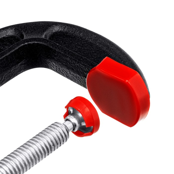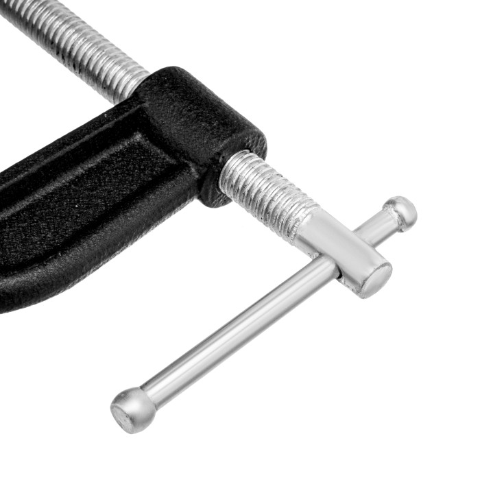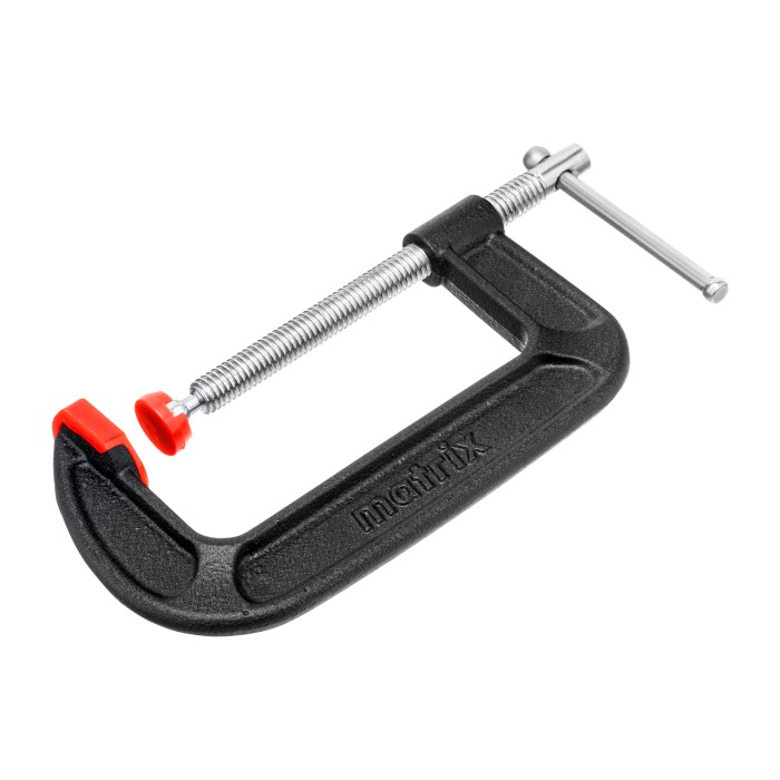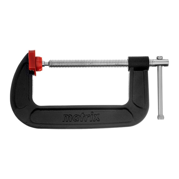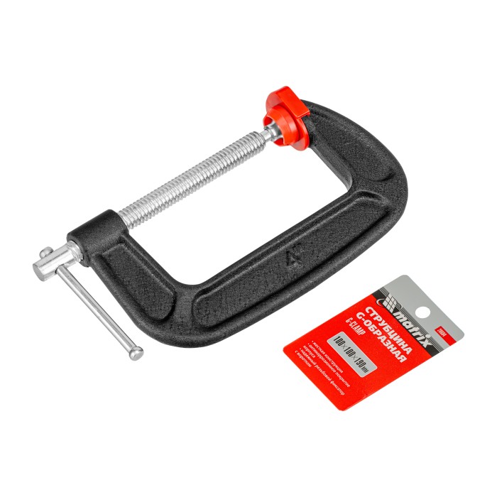 G-образная струбцина Matrix 20604 с максимальной шириной зажима 100 мм используется для фиксации заготовок или закрепления их на верстаке или станке. Позволяет склеивать детали, а также сверлить их, шлифовать, опиливать и проводить другие работы. Подходит для использования при сварке. Рама изготовлена из высокопрочного чугуна, поэтому выдерживает значительные усилия. Винт с трапециевидной резьбой обеспечивает надежную фиксацию предметов. Струбцина применяется в слесарном и столярном деле, а также в домашнем хозяйстве.ПреимуществаВинт изготовлен из стали, что повышает устойчивость конструкции к нагрузкам.Покрытие из порошковой краски препятствует образованию коррозии на раме и обеспечивает ее стойкость к механическим повреждениям.Пластиковые накладки на губках защищают обрабатываемые детали от появления дефектов на поверхности (перед сварочными работами накладки необходимо снять).Для вращения винта предусмотрен вороток, что экономит силы мастера при затягивании зажима.