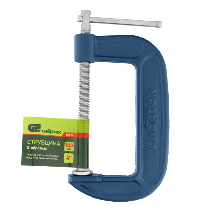 Струбцина G-образная Сибртех 20584 с шириной зажима 100 мм применяется для фиксации заготовок с целью их склеивания, а также для крепления к верстаку или станку для опиливания, сверления и другой обработки. Может использоваться во время сварки металлических деталей. Рама выполнена из чугуна с шаровидным графитом, поэтому отличается высокой прочностью и устойчивостью к нагрузкам. Струбцина пригодится в слесарной и столярной мастерской, а также будет полезна в домашнем хозяйстве.ПреимуществаРабота со значительным усилием — резьбовой шток изготовлен из прочной стали Ст3.Надежная фиксация деталей — струбцина имеет подвижный зажим, установленный на шаровой шарнир.Защита от коррозии — корпус струбцины покрыт порошковой эмалью, а шток оцинкован.