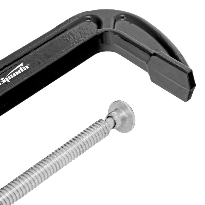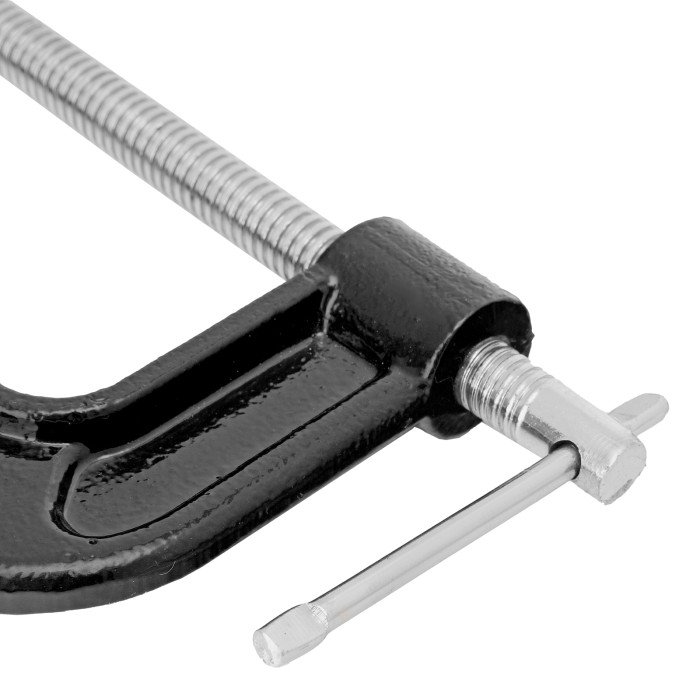 G-образная струбцина Sparta 206625 с шириной зажима 150 мм надежно фиксирует различные детали для дальнейшего склеивания, сверления, пиления, шлифования или сварки. Винт с воротком и крупной червячной резьбой позволяет з...