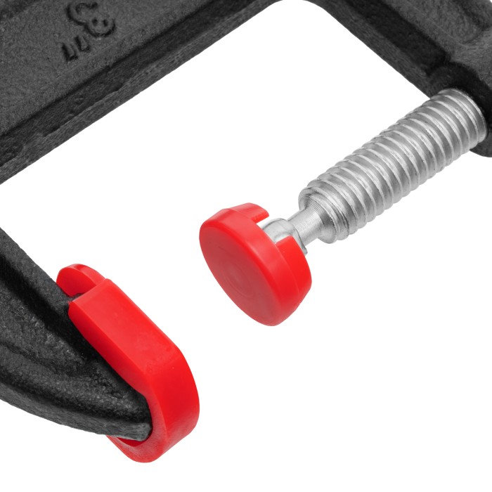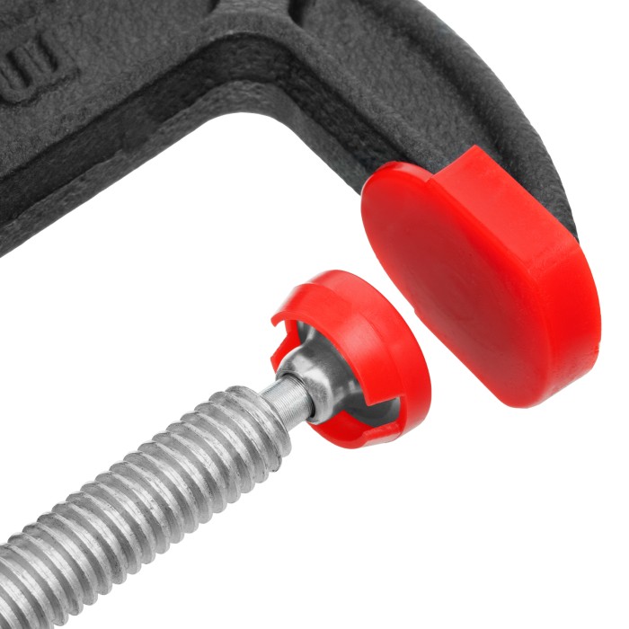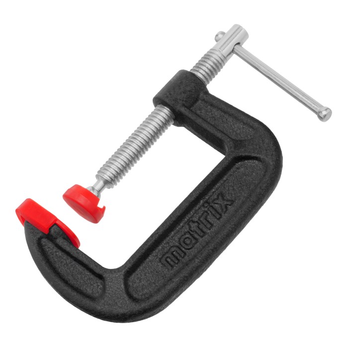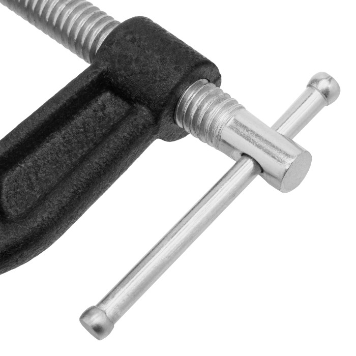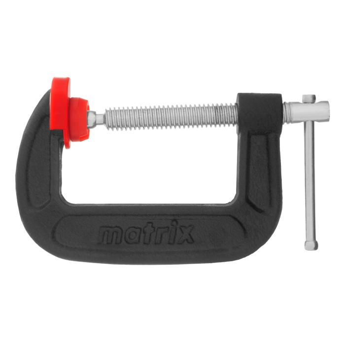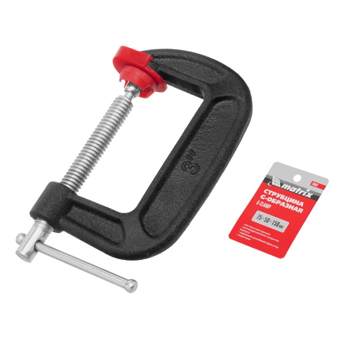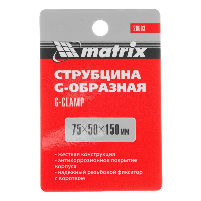 Струбцина G-образная Matrix 20603 с максимальной шириной зажима 75 мм используется для фиксации заготовок или закрепления их на верстаке или станке. Позволяет склеивать детали, а также сверлить их, шлифовать, опиливать и проводить другие работы. Подходит для использования во время сварки. Стальной винт и рама из высокопрочного чугуна выдерживают значительные нагрузки. Винт с трапециевидной резьбой обеспечивает надежную фиксацию предметов. Струбцина применяется в слесарном и столярном деле, а также в домашнем хозяйстве.ПреимуществаЗащита от коррозии и механических повреждений — на раму нанесено покрытие из порошковой краски.Аккуратная работа — пластиковые накладки на губках защищают обрабатываемые детали от появления дефектов на поверхности (перед сварочными работами накладки необходимо снять).Экономия усилий при затягивании зажима — для вращения винта предусмотрен вороток.