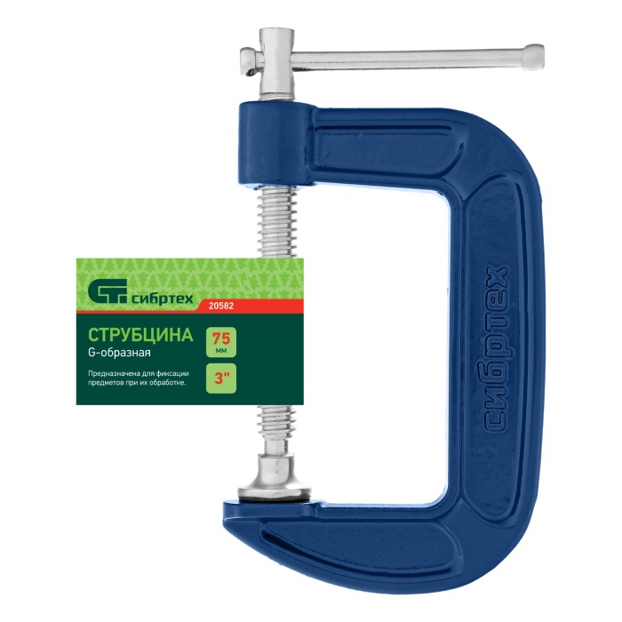 Струбцина G-образная Сибртех 20582 с шириной зажима 75 мм применяется для фиксации заготовок с целью их склеивания, а также для крепления к верстаку или станку для опиливания, сверления и другой обработки. Может использо...