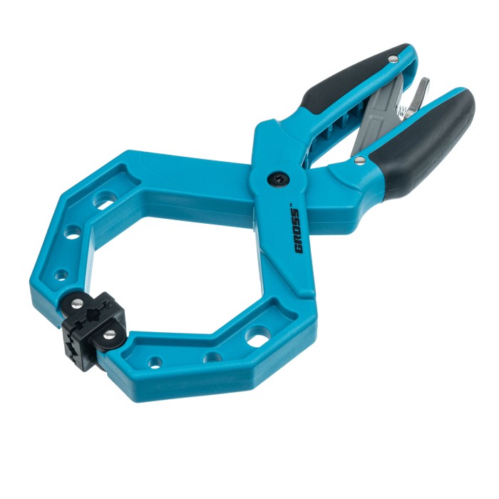 Струбцина клещеобразная 4, пластиковый корпус, храповой механизм жесткой фиксации, 100 мм Gross