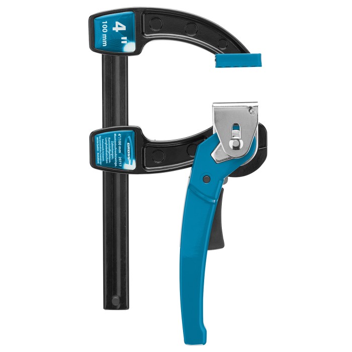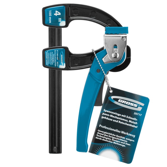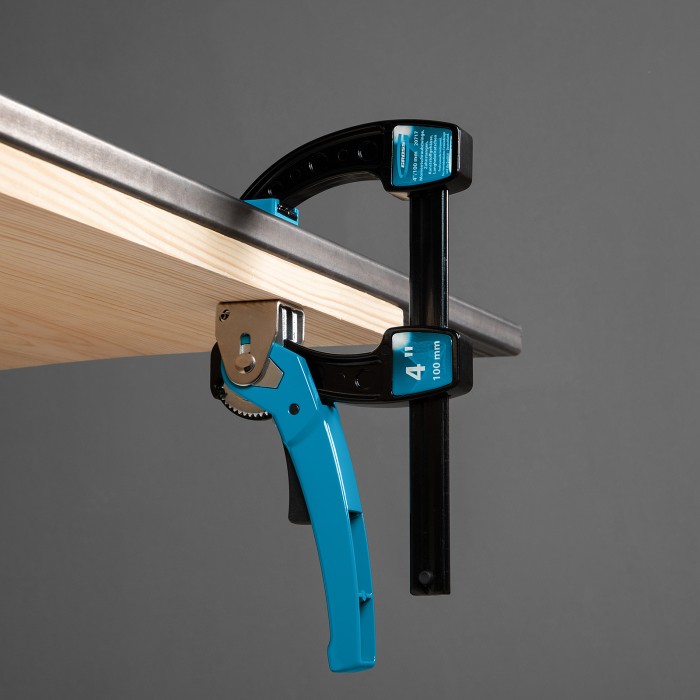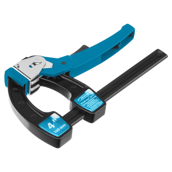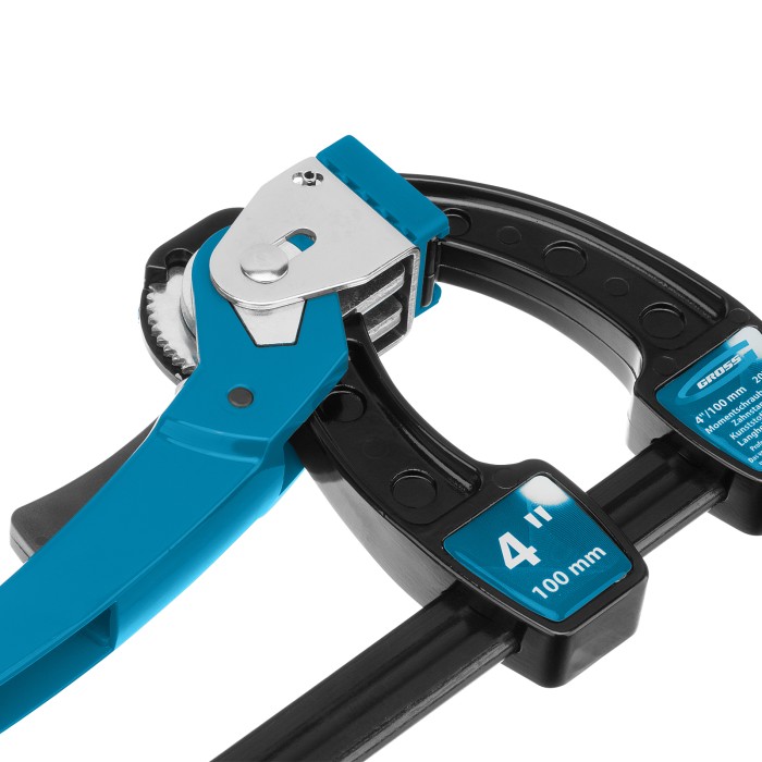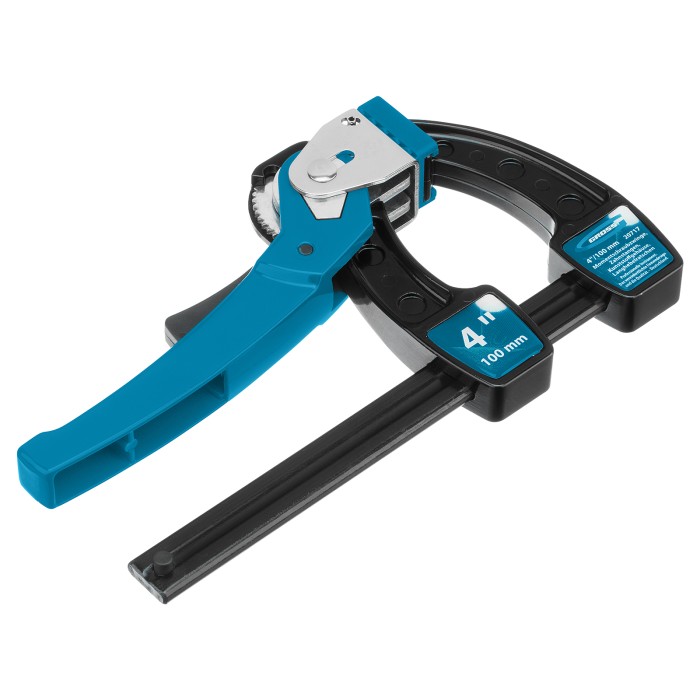 Струбцина реечная быстрозажимная 4, металлический корпус, рычажный храповой механизм, 100 мм Gross