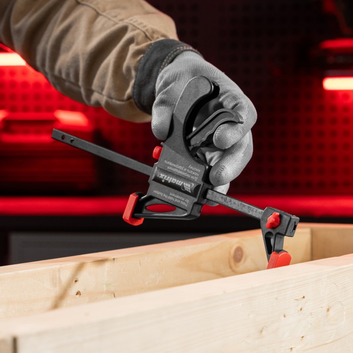Универсальная F-образная быстрозажимная струбцина Matrix 20561 размером 150 х 265 х 45 мм, в пластиковом корпусе, используется в столярном деле. Позволяет быстро фиксировать заготовки с целью их соединения или обработки ...