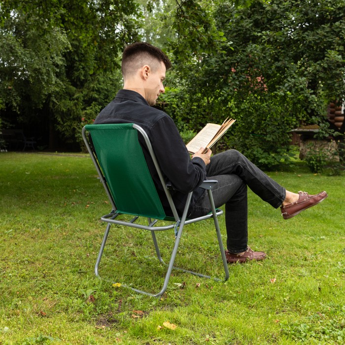 Складной стул Palisad Camping 69591 с подлокотниками, размером 60 х 53 х 75 см, сделает комфортным отдых на природе, а также выручит дома или на даче в случае прихода гостей. Благодаря спинке и подлокотникам благополучно заменяет кресло.ПреимуществаОбладает повышенной прочностью и долговечностью — сиденье и спинка состоят из двойного слоя полиэстера плотностью 600D.Надежность — каркас выполнен из стали, диаметр ножек составляет 16 мм, поэтому стул выдерживает нагрузку до 80 кг.Компактность — стул весит 2,3 кг и имеет складную конструкцию, поэтому удобен для хранения и транспортировки.