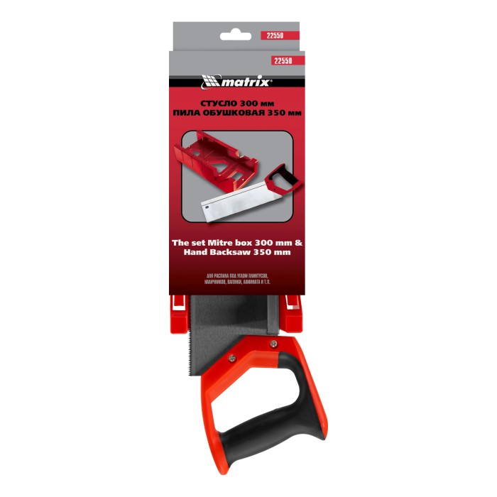 Пластиковое стусло Matrix 22550 длиной 300 комплектуется обушковой пилой 350 мм с двухкомпонентной рукояткой. Набор рассчитан на распиловку деревянных, полиуретановых и пластиковых заготовок размером до 100 х 60 мм. Благодаря ему можно осуществлять рез в горизонтальной плоскости под углом 90 градусов и в вертикальной под углом 45/90 градусов. Стусло станет незаменимым помощником для частных мастеров и профессионалов при необходимости плотной стыковки деталей. Максимальная ширина обработки заготовок составляет 95 мм, глубина — 45 мм.ПреимуществаПила в наборе — режущий инструмент не нужно покупать отдельно.Надежность и долговечность — полотно пилы выполнено из высокопрочной стали 65 Mn.Обушковая пила — наращивание толщины полотна позволяет снизить его колебания во время работы.Качественная работа — пила оснащена мелкими подкаленными зубьями с шагом 2 мм.Удобство работы — в конструкции стусла предусмотрены отверстия для крепления к верстаку на шурупы или гвозди.Надежный хват — пила оснащена двухкомпонентной рукояткой.