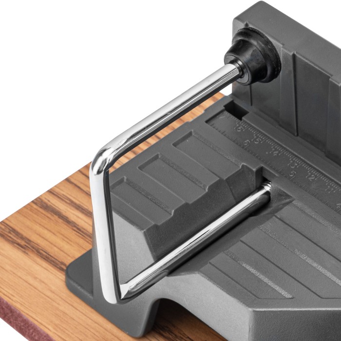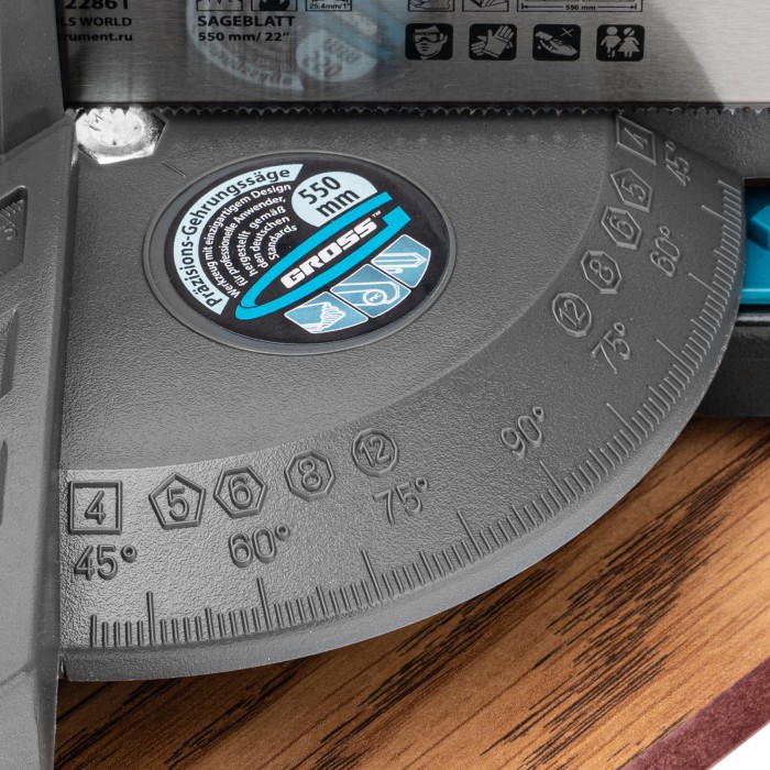 Прецизионное стусло Gross 22757 с пилой длиной 550 мм и 2 прижимными струбцинами предназначено для работы с заготовками из древесины, пластика и древесно-композитных материалов. Стусло используется для работы с деталями шириной до 137 мм и толщиной 110 мм. Устройство обеспечивает высокую производительность работ и оптимально для профессионального применения.ПреимуществаРешение широкого спектра задач — пилу можно устанавливать под следующими углами: 15, 22,5, 30, 36, 45 и 90°.Надежность — рабочий столик изготовлен из ударопрочного пластика и зафиксирован на плите МДФ.Функциональность — прижимные струбцины надежно фиксируют заготовку, измерительные шкалы облегчают определение ее рабочей длины и угла распила.Чистый и ровный рез — пильное полотно из инструментальной японской стали SK-5 имеет мелкие зубья с шагом TPI 14.Эргономичность — алюминиевая рукоятка надежно ложится в руку.