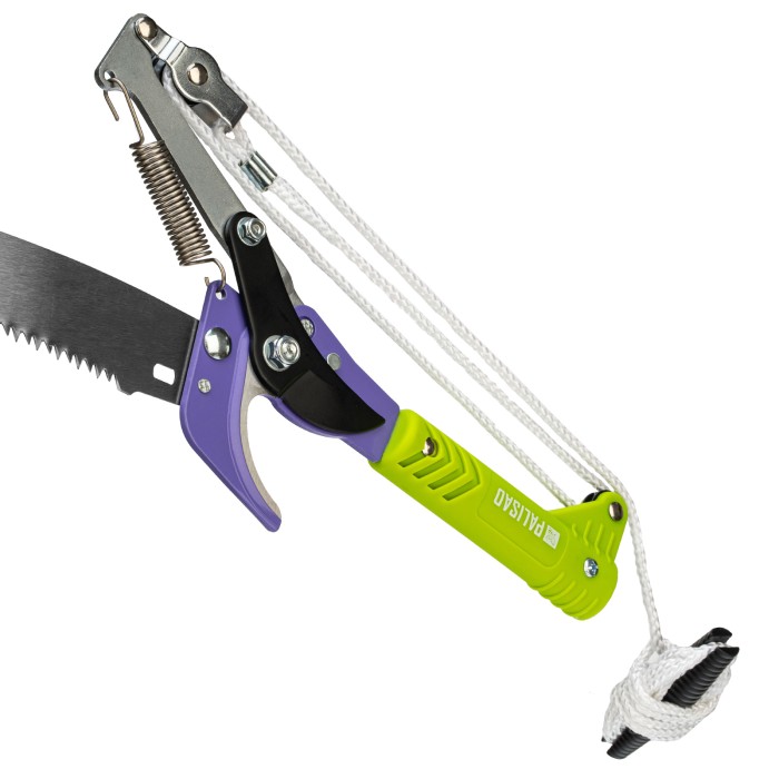 Штанговый сучкорез прямого реза Palisad 60581 с пилой и пластиковой тулейкой диаметром 25 мм способен срезать живые ветки толщиной до 20 мм. Выполнение этой задачи упрощает тефлоновое покрытие лезвия, уменьшающее трение о древесину. Более толстые ветви диаметром до 60 мм можно спилить пилой, которая предусмотрена в конструкции инструмента. Сучкорез с пилой необходимо установить на штангу или черенок (приобретается отдельно), чтобы обрезать ветки на высоких кронах. Инструмент пригодится владельцам загородных участков.ПреимуществаПрочность и высокий ресурс — стальное рабочее лезвие прошло индукционную закалку, режущая кромка имеет прецизионную заточку.Устойчивость к разрушению — тефлоновое покрытие режущего лезвия и нанесенная на опорное лезвие порошковая эмаль защищают инструмент от коррозии.Деформационная стойкость — пила из рессорно-пружинной стали выдерживает высокие нагрузки.Эффективная работа с толстыми ветками — зубья пилы разведены и имеют трехгранную заточку, что предотвращает застревание полотна в древесине и облегчает рез.Долговечность — тулейка выполнена из пластика и не разрушается под действием ультрафиолета.
