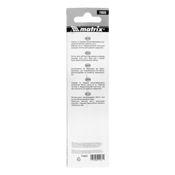 Сверло Matrix 70860 размером 10 х 120 мм, с цилиндрическим хвостовиком, устанавливается на дрель и используется для получения отверстий в бетоне, кирпиче, мраморе и других твердых материалах. Оно рассчитано на полупрофес...