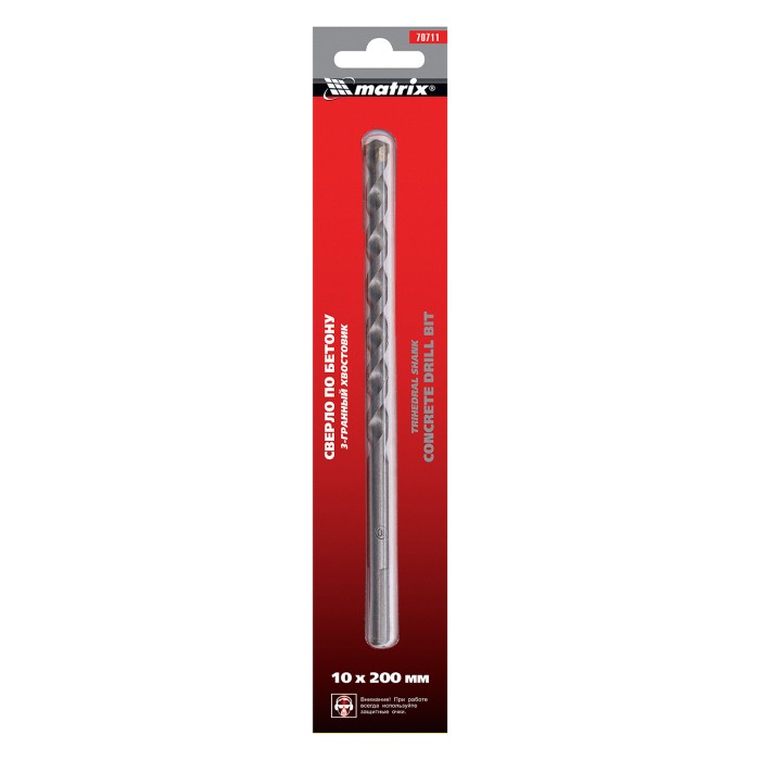 Сверло по бетону Matrix 70711 размером 10 х 200 мм, с 3-гранным хвостовиком, используется для получения отверстий с помощью дрели. Пригодится для сверления бетона, мрамора, керамики и других твердых материалов.ПреимуществаСверло из прочной углеродистой стали 40Х устойчиво к нагрузкам и прослужит долго.Твердосплавная пластина ВК8 обеспечивает эффективное и точное сверление.3-гранный хвостовик не проворачивается в патроне во время работы.