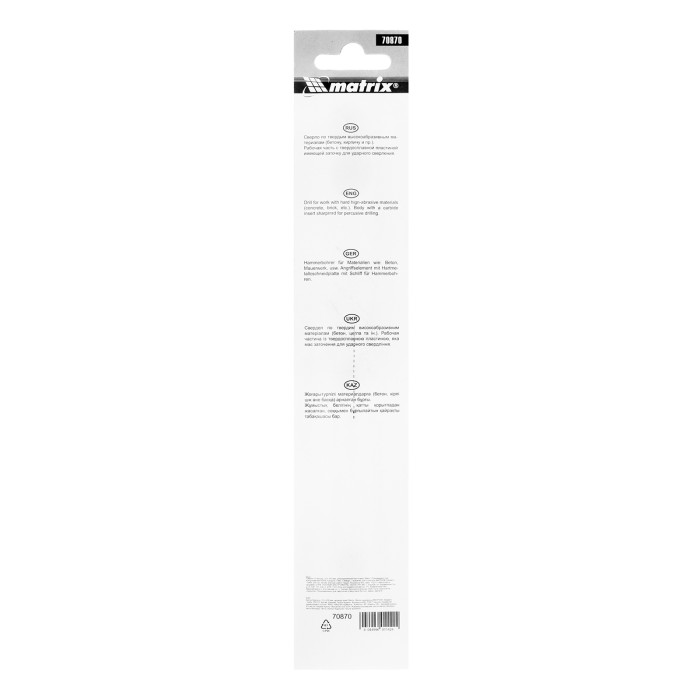 Сверло Matrix 70870 размером 10 х 200 мм, с цилиндрическим хвостовиком, устанавливается на дрель и используется для получения отверстий в бетоне, кирпиче, мраморе и других твердых материалах. Оно рассчитано на полупрофес...