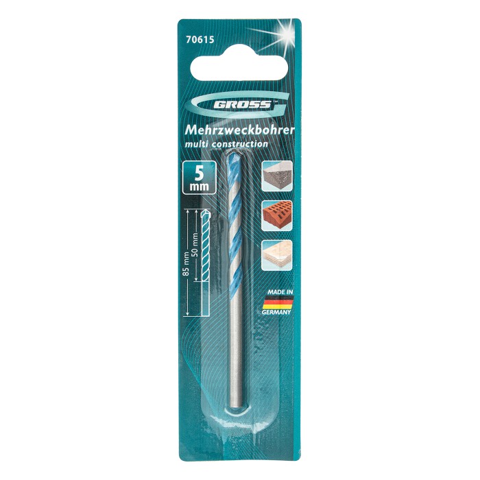 Сверло по бетону Gross Multipurpose Pro 70615 позволяет получать отверстия диаметром 5 мм в камне, бетоне и кирпиче. Подходит для работ по металлу и дереву, что позволяет сверлить разные материалы без замены оснастки. Сверло будет полезно во время строительства и ремонта, а также пригодится в быту.ПреимуществаПрочность — сверло выполнено из высоколегированной стали и прошло индукционную закалку, поэтому выдерживает динамические нагрузки.Высокий ресурс работоспособности — режущая пластина из сплава карбида вольфрама твердостью 80-90 HRC, прошедшая алмазную заточку, изготовлена компанией Ceratizit.Устойчивость к ударным нагрузкам — твердосплавная пластина надежно закреплена высококачественным припоем.Эффективность — продуманная форма спирали способствует быстрому удалению продуктов сверления, что повышает производительность сверла и увеличивает срок его службы.Гарантированное качество — сверло изготовлено на высокотехнологичном заводе в Германии.