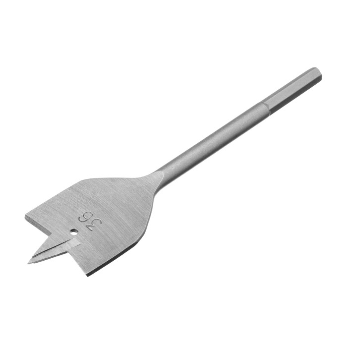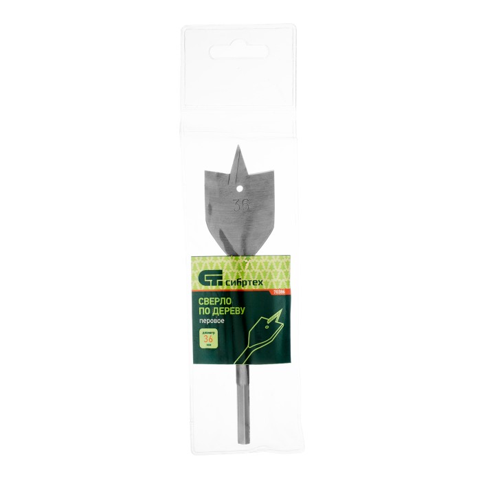 Перовое сверло по дереву Сибртех 70386 предназначено для получения в древесине глубоких отверстий диаметром 36 мм. Имеет центральный шип, обеспечивающий точное позиционирование инструмента и облегчающий засверливание. Позволяет просверливать сквозные, а при отсутствии строгих требований к форме дна — и глухие отверстия. Может быть установлено в патрон ручной или электрической дрели, а также сверлильного станка. Сверло используется в столярном деле.ПреимуществаПрочность — сверло из инструментальной стали устойчиво к динамическим нагрузкам.Износостойкость — рабочая часть твердостью 42-50 HRC долго сохраняет режущую способность.Надежная фиксация — шестигранный хвостовик не проворачивается в патроне.