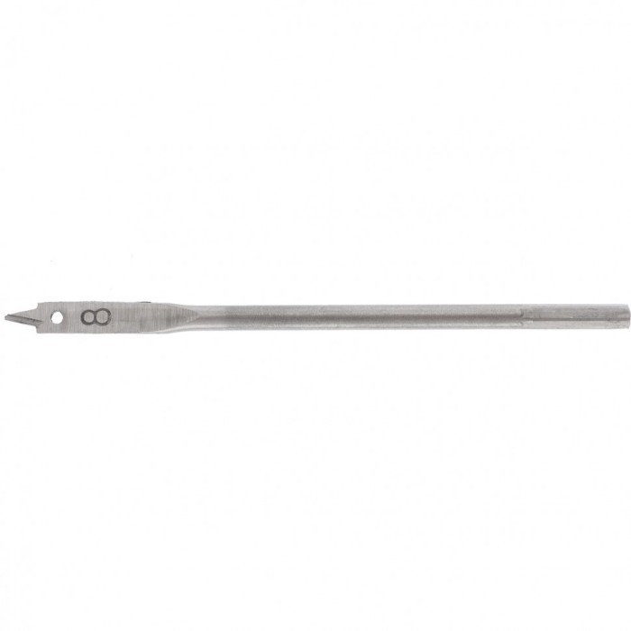 Перовое сверло по дереву Сибртех 70359 предназначено для получения в древесине глубоких отверстий диаметром 8 мм. Имеет центральный шип, обеспечивающий точное позиционирование инструмента и облегчающий засверливание. Позволяет просверливать сквозные, а при отсутствии строгих требований к форме дна — и глухие отверстия. Может быть установлено в патрон ручной или электрической дрели, а также сверлильного станка. Сверло используется в столярном деле.ПреимуществаПрочность — сверло из инструментальной стали устойчиво к динамическим нагрузкам.Износостойкость — рабочая часть твердостью 42-50 HRC долго сохраняет режущую способность.Надежная фиксация — шестигранный хвостовик не проворачивается в патроне.