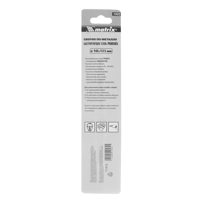 Сверло Matrix 71472 диаметром 10 мм, из стали HSS Co-5%, имеет угол заточки 135°, оптимальный для сверления легированных и цветных металлов. Подходит для профессионального использования на строительной площадке.ПреимуществаСтойкость к износу и перегреву — сверло выполнено методом вышлифовывания профиля из качественной быстрорежущей стали с 5% содержанием кобальта и имеет увеличенную сердцевину.Легкое засверливание — благодаря подточенной поперечной кромке предварительное накернивание (создание лунки) не требуется.Высокая скорость работы — поверхность сверла отполирована, что снижает трение и обеспечивает эффективный отвод стружки.Универсальность — цилиндрический хвостовик совместим со всеми типами патронов.