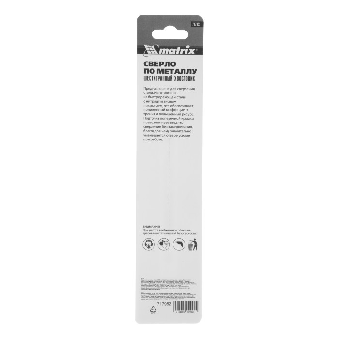 Сверло по металлу Matrix 717952 диаметром 10 мм, из стали HSS, с нитридтитановым покрытием и 6-гранным хвостовиком, предназначено для получения отверстий в черном металле, стали, чугуне и твердой бронзе. Устанавливается в патрон дрели.ПреимуществаПрочность — сверло изготовлено из быстрорежущей стали HSS.Высокий ресурс — нитридтитановое покрытие обеспечивает стойкость оснастки к коррозии и перегреву.Эффективная работа — за счет полированной поверхности сверло меньше подвержено трению и лучше отводит стружку.Надежная фиксация — шестигранный хвостовик не проворачивается в патроне дрели.