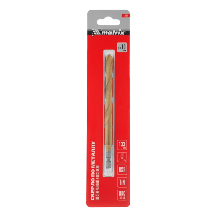 Сверло по металлу, 10 мм, HSS, нитридтитановое покрытие, шестигранный хвостовик Matrix