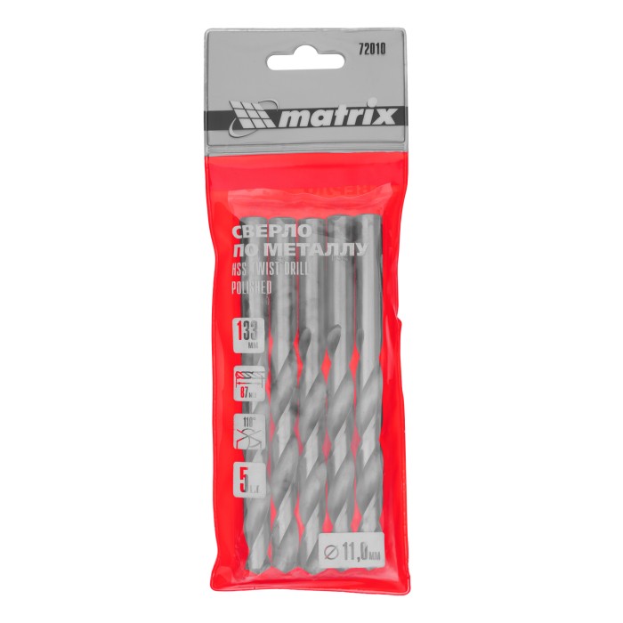 Сверло по металлу, 11 мм, полированное, HSS, 5 шт, цилиндрический хвостовик Matrix