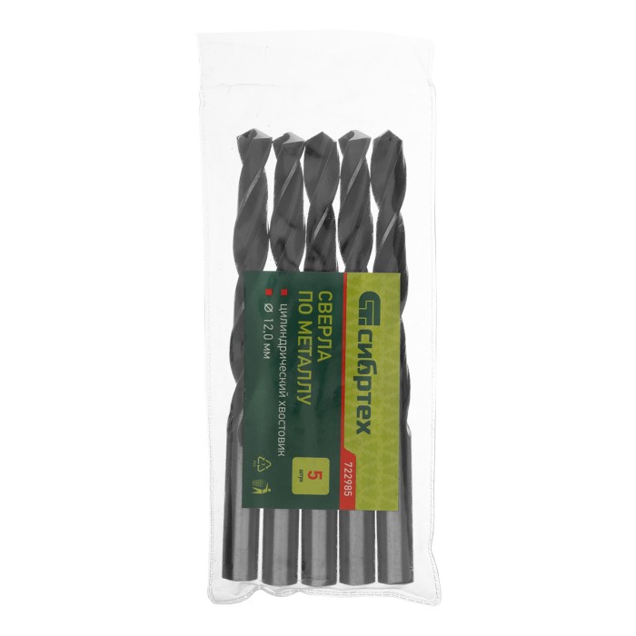 Сверло по металлу Сибртех 722985 из быстрорежущей стали, с цилиндрическим хвостовиком, 5 шт. в упаковке, имеет угол заточки 118° и используется для получения отверстий диаметром 12 мм в цветных и тяжелых металлах. Инстру...