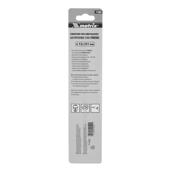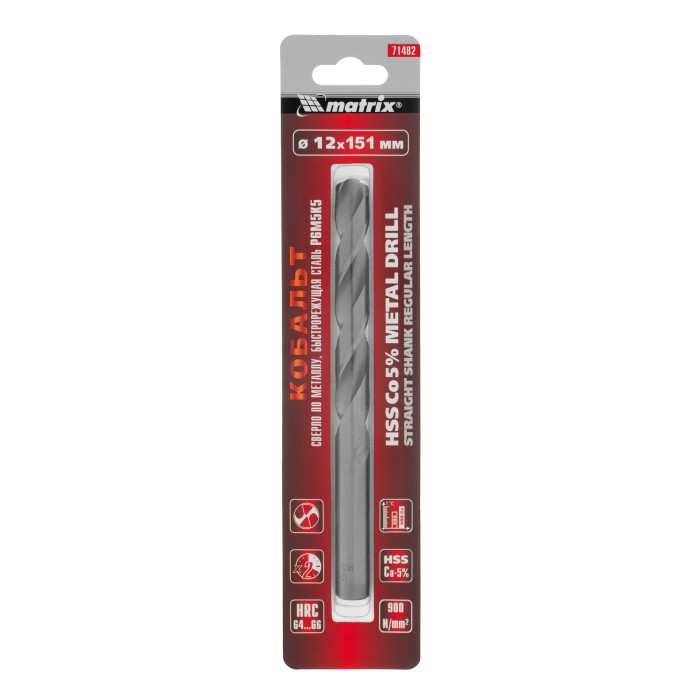 Сверло Matrix 71482 диаметром 12 мм, из стали HSS Co-5%, имеет угол заточки 135°, оптимальный для сверления легированных и цветных металлов. Подходит для профессионального использования на строительной площадке.Преимущес...