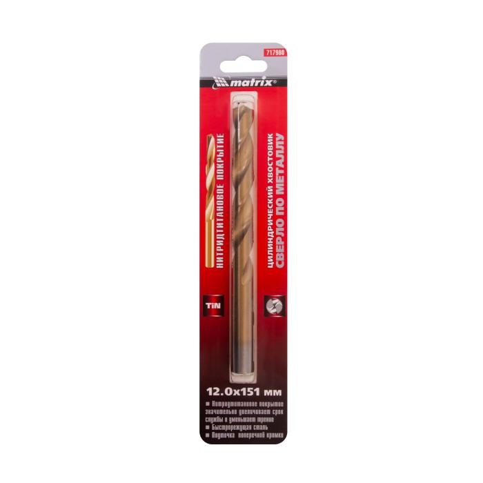 Сверло по металлу, 12 мм, HSS, нитридтитановое покрытие, цилиндрический хвостовик Matrix