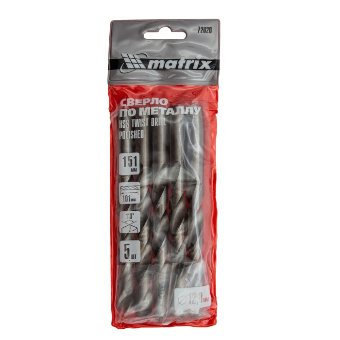 Сверло по металлу, 12 мм, полированное, HSS, 5 шт, цилиндрический хвостовик Matrix