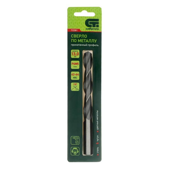 Сверло по металлу, 13 мм, Р6М5 Сибртех