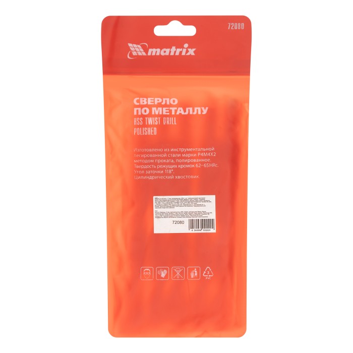 Полированное сверло по металлу Matrix 72080 из стали HSS, с цилиндрическим хвостовиком, 5 шт. в упаковке, используется для получения отверстий диаметром 18 мм. Угол заточки составляет 118°, поэтому сверло оптимально для работы с черными металлами, сталью, чугуном и твердой бронзой.ПреимуществаПрочность и высокий ресурс — оснастка выполнена из быстрорежущей стали HSS, режущие кромки закалены до твердости 62-65 HRC.Эффективная работа — полированная поверхность снижает трение сверла о стенки отверстия и улучшает отвод стружки, а ленточки на канавках выполняют функцию дополнительных режущих элементов.Продуманная конструкция — диаметр рабочей части уменьшается по направлению к хвостовику, что снижает трение и предотвращает застревание сверла.Универсальность — цилиндрический хвостовик подходит к патронам любого типа.Удобная комплектация — в упаковке 5 сверл, которых хватит для выполнения большого объема работ.