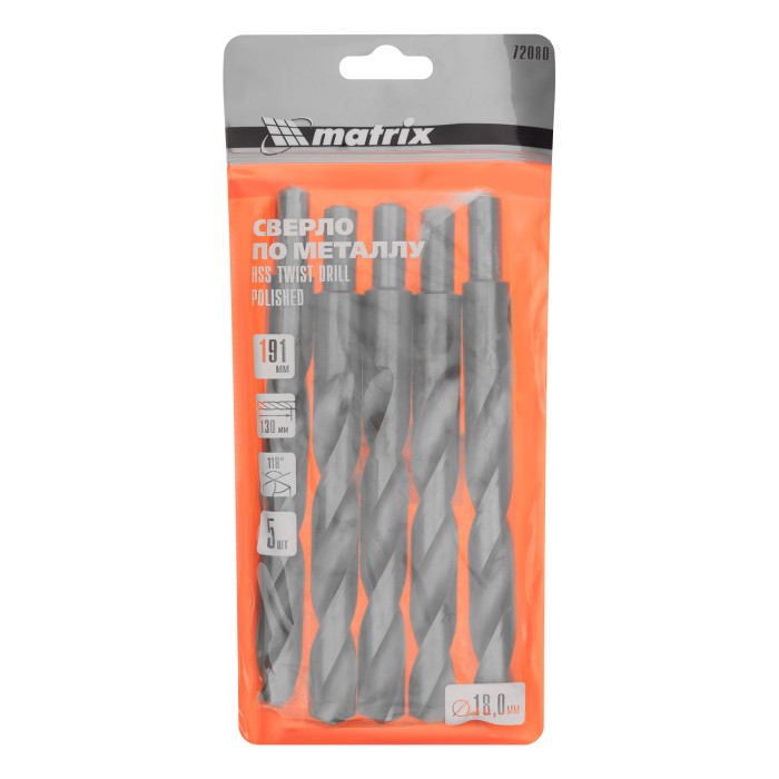 Сверло по металлу, 18 мм, полированное, HSS, 5 шт, цилиндрический хвостовик Matrix