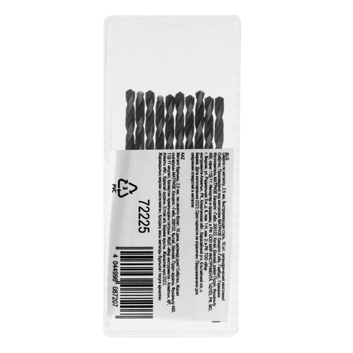Сверло по металлу, 2.5 мм, быстрорежущая сталь, 10 шт, цилиндрический хвостовик Сибртех