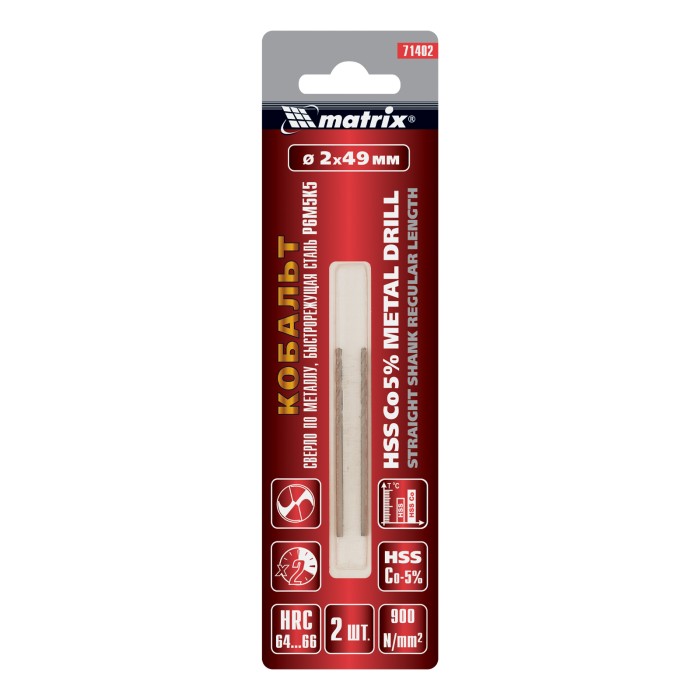 Сверло по металлу, 2 мм, HSS Co-5%, 2 шт Matrix