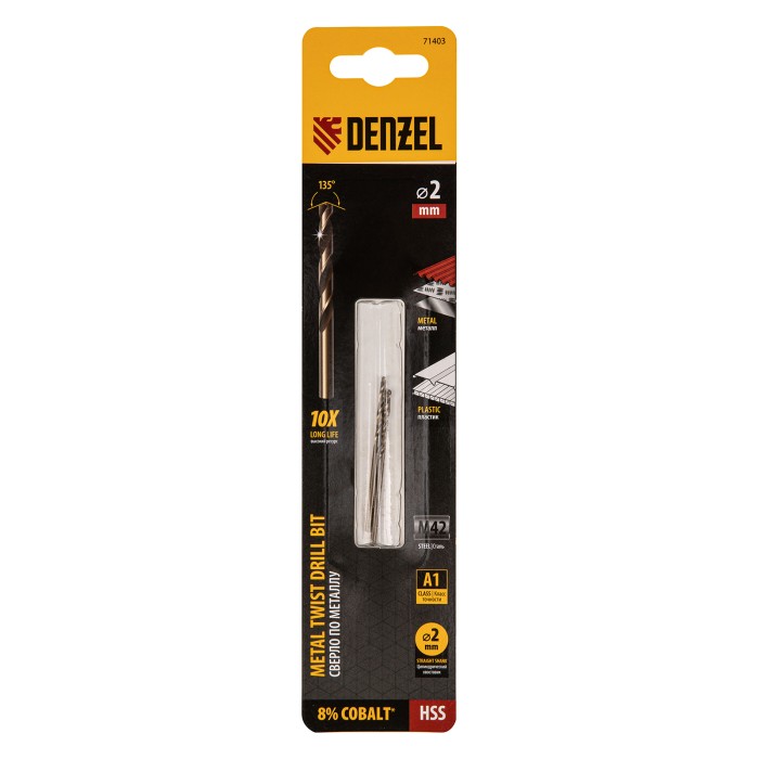Сверло по металлу, 2 мм, HSS Co-8%, 2 шт.// Denzel