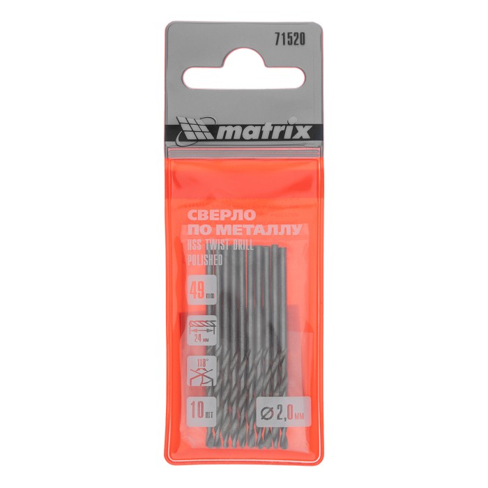 Полированное сверло по металлу Matrix 71520 из стали HSS, с цилиндрическим хвостовиком, 10 шт. в упаковке, используется для получения отверстий диаметром 2,0 мм. Угол заточки составляет 118 градусов, поэтому сверло оптим...