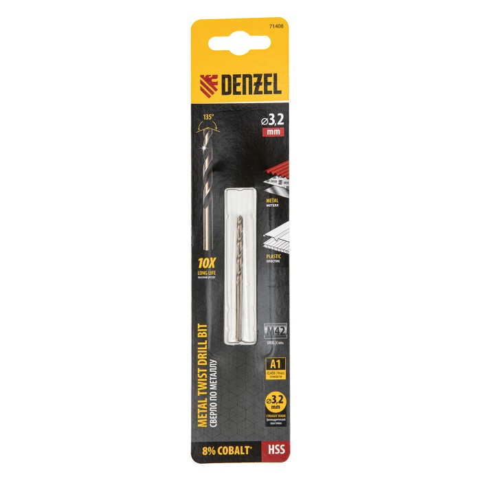 Сверло по металлу, 3,2 мм, HSS Co-8% // Denzel